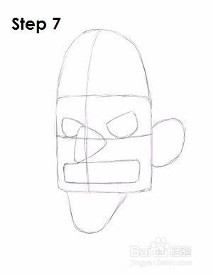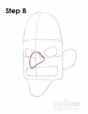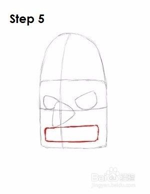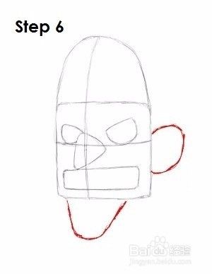 第五步:画出Waluigi阴险的微笑,在他的鼻子正下方画一个长而窄的长方形。