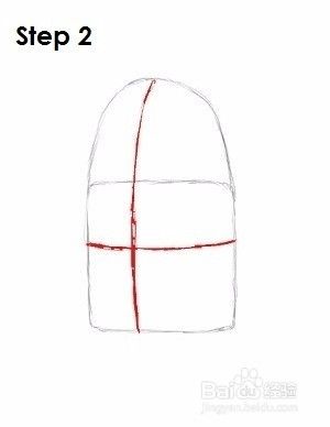 步骤2:在形状内部绘制两条相交的线,一条垂直,一条水平线。将垂直线绘制得更靠近头部形状的左边缘,而水平线应该位于原始正方形的中间附近。这些将是帮助您稍后放置Waluigi功能的构造线。