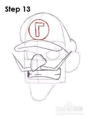 第13步:最后在Waluigi的帽子上方画一个大的落后倒立的字母L,并在它周围划一个圆圈。