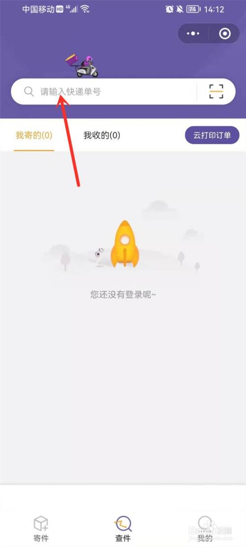 进入查件界面,输入快递单号,点击右侧【搜索】。