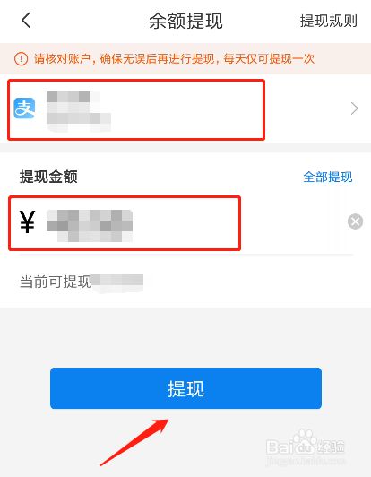最后,选择提现的账户,输入提现金额,点击“提现”即可。