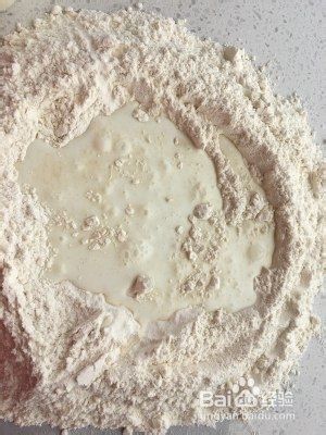 在面粉中央挖一个坑,放入糖,盐,酵母,鸡蛋液,(油先不要放进去)用手指画圈,把中间的原料搅拌,边画圈边加入牛奶直到所有的材料混到一起,没有流动的液体,变成棉絮状。