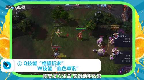 1Q技能“绝望祈求”:恢复友方生命,获得绝望效果;W技能“血色审讯”:对敌方英雄引导法术,持续三秒造成伤害。