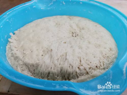 面粉和酵母放入盆中,加温水合成面团,盖上盖发酵,当面团发酵至原面团1倍大左右时,面团就发酵好了。