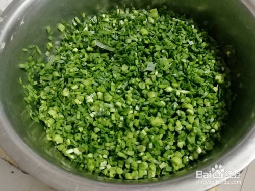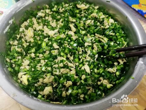 放入韭菜中拌匀,做成鸡蛋韭菜馅。