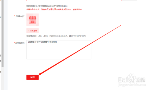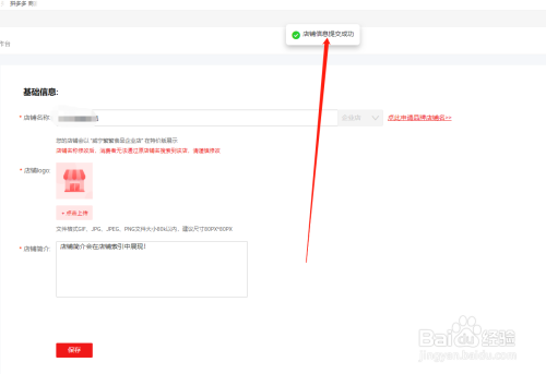 此时输入完成店铺名字,然后点击“保存”按钮,上面有提示提交成功的信息即可