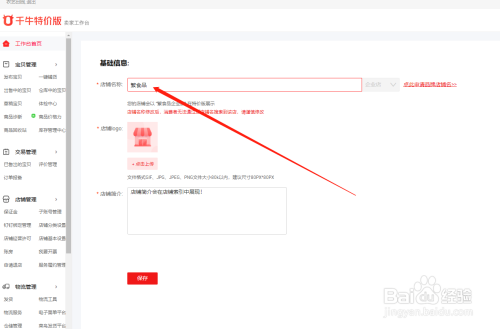 在店铺基本设置界面看到店铺名字,直接删除原有,输入现在要修改的店铺名字