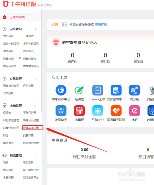 店铺管理子菜单下面点击“店铺基本设置”进去