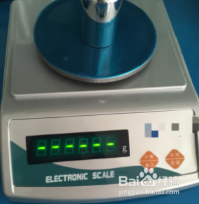 出现了砝码值,就可以放上相对应量程的砝码。不要用手直接去接触砝码,最好用镊子,或者塑料袋包裹住。
