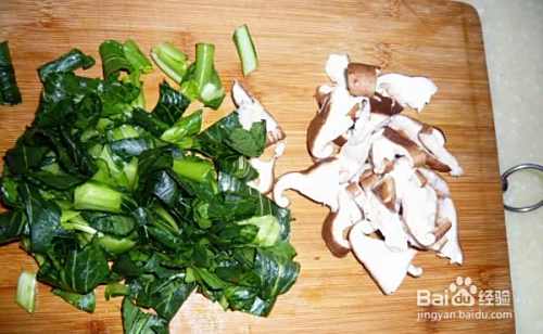 5青菜香菇切碎。