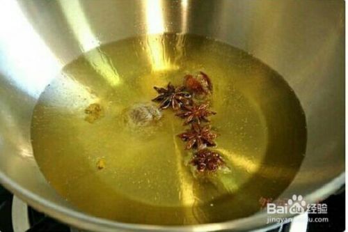 锅里放入大量油,待油热后放入八角和草果炸香。