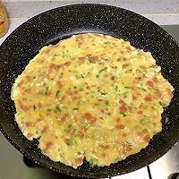 倒入部分蛋液,摊平。