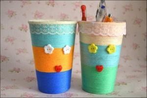 记得,在小时候,父母总是对我们说:你们比我们幸福多了,我们小时候衣服、鞋子都是自己做的!当我们成为父母后,我们也不禁会对宝贝们说:你们比我们要幸福呀!我们小时候都没有回头想想,小时候尽管物质缺乏,没有多少学业负担,没有多少玩具,却能尽享大自然的玩具,泥巴,沙石百玩不厌,还可以用这些天然材料作出不少工具。如今,宝贝们的物质生活丰富了,却难以有机会亲自动手,因而,在开学之际,我提议自己做文具。今天教大家制作手工笔筒。