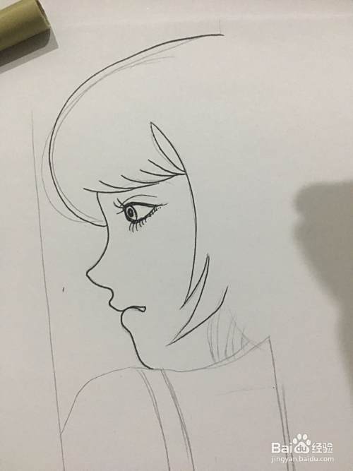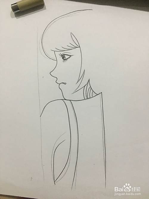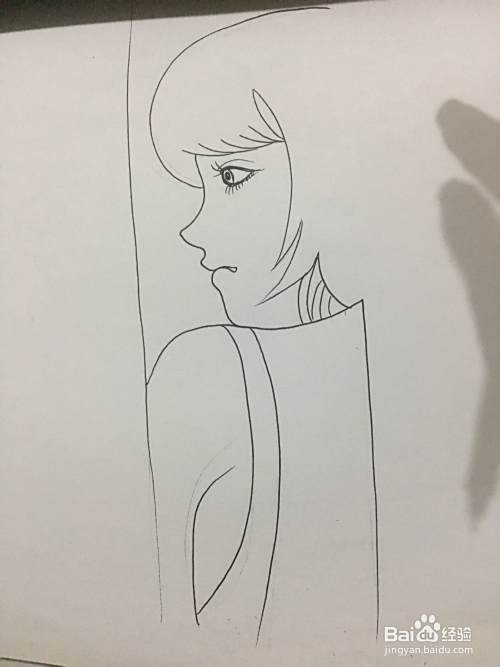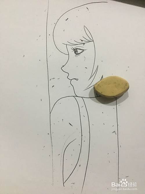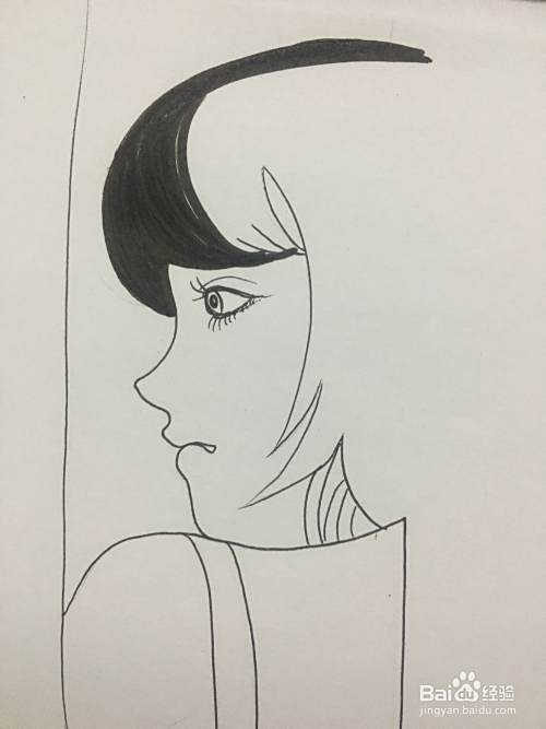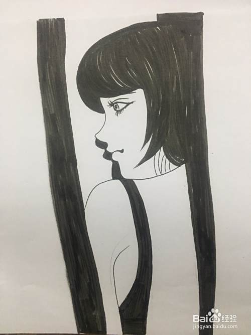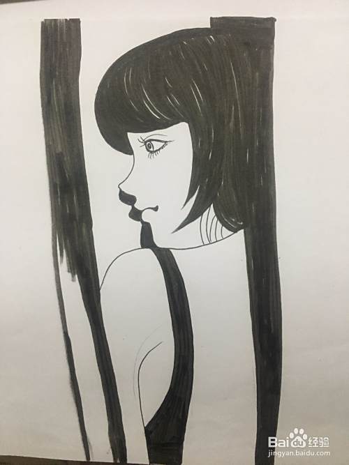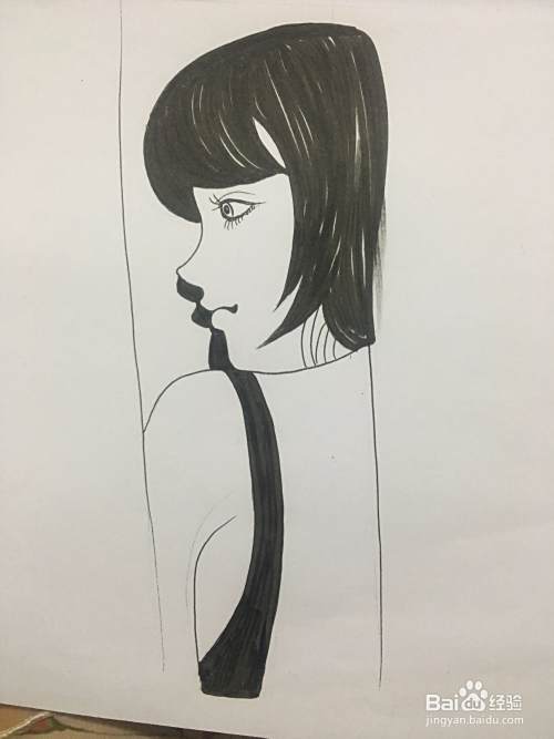 今天小编示范画黑夜里门缝中一个短发女孩的侧脸。