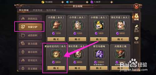 第二、在积分商城坐骑守护页面,点击黄金幼龙闪闪守护;