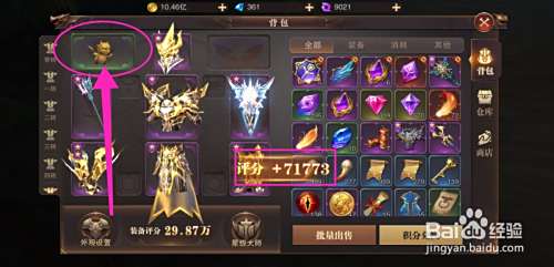 第七、黄金幼龙闪闪守护穿戴到装备栏,属性评分提升。
