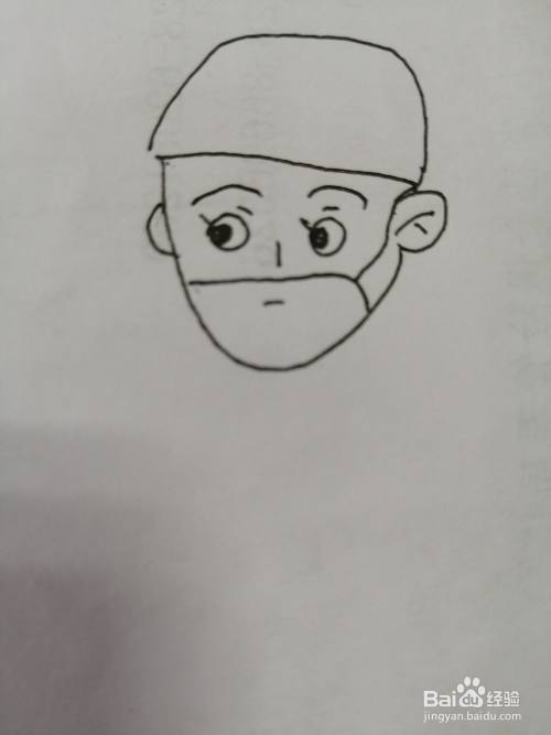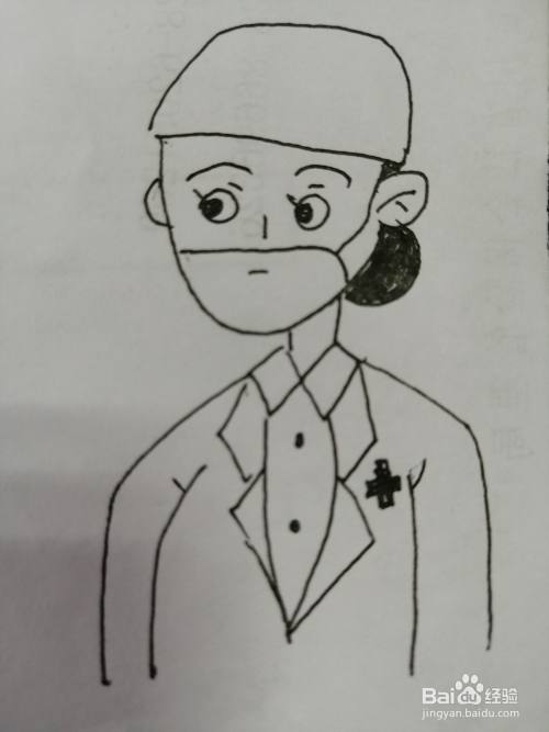 第五步,然后我们继续把护士小姐姐的嘴巴上的口罩画出来。