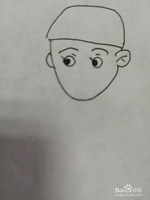 第三步,然后把护士小姐姐到两边的耳朵画出来。