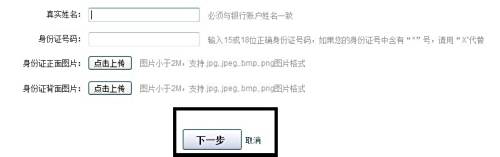 点击进去后再填写你的名字和事先准备好的身份证的正反面照片,然后点击下一步,等待系统的审核。