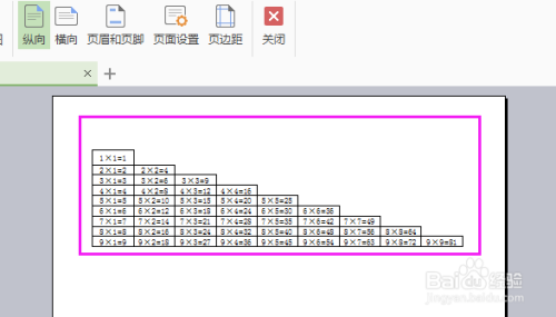 “文件-打印区域-设置打印区域”,对已整理修饰好的九九乘法表进行打印区域的选择,在进行打印预览的时候,就可以看到美好的九九乘法表了。如下图