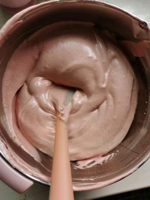 9把搅拌好的蛋糕糊倒进去,轻震出气泡