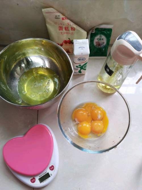 1将鸡蛋的蛋白和蛋黄分开,盛蛋白的盆必须无水无油无蛋黄
