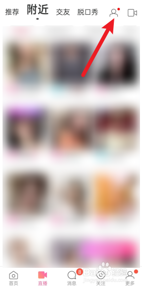打开手机上的陌陌,点击直播