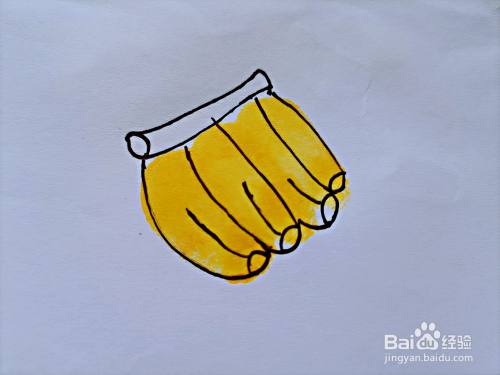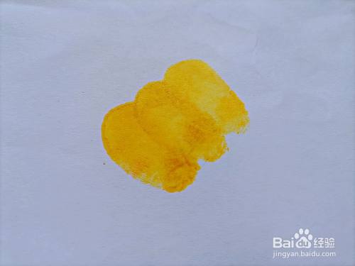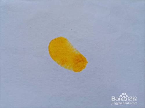 用食指在黄色印泥上粘上颜色,然后在白纸上印上一个食指印,如下图所示。
