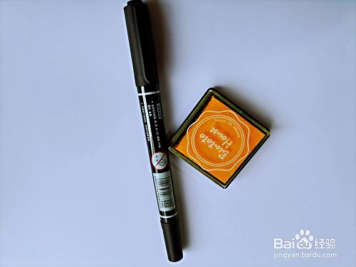 首先我们准备好要用到的材料,一张白纸、一支勾线笔和一盒彩色印泥(颜色随意)。