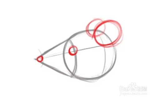 为耳朵画两个大圆圈。然后在眼睛上再加一个圆圈,在鼻子上再加一个圆圈。