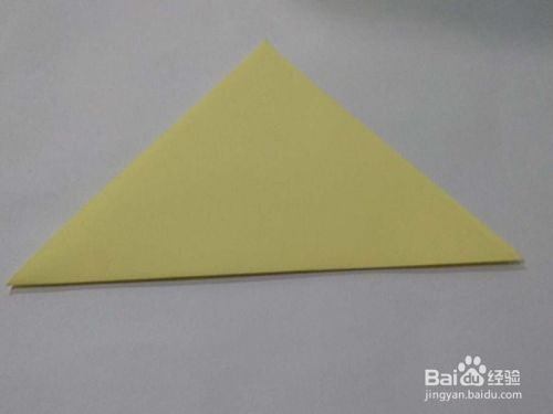 拿出一张正方形彩纸,沿着对角线对折一下。对折好之后,形成一个等腰三角形。