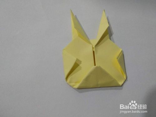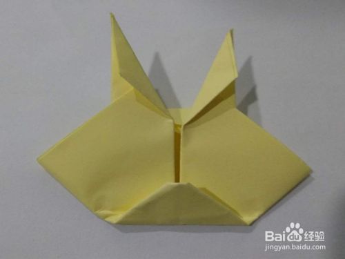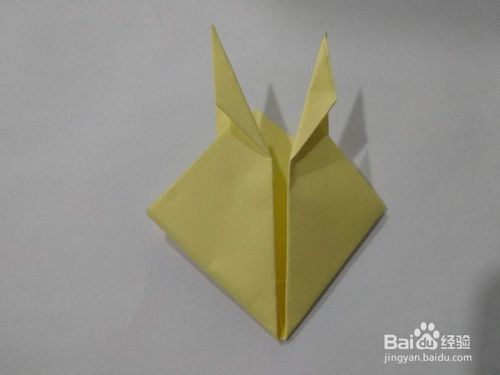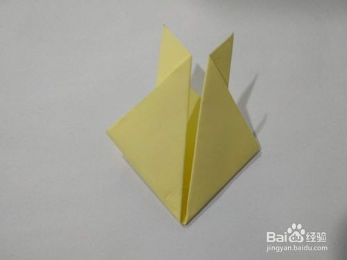 接下来上面就形成了两个耳朵,把两个耳朵的三角,从里往外折成更小的三角形。