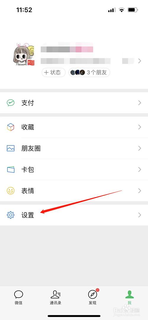 所有操作系统的手机都可以使用这个方法来恢复,这里以iOS系统手机为例为大家演示,打开微信进入个人主页后,点击【设置】。