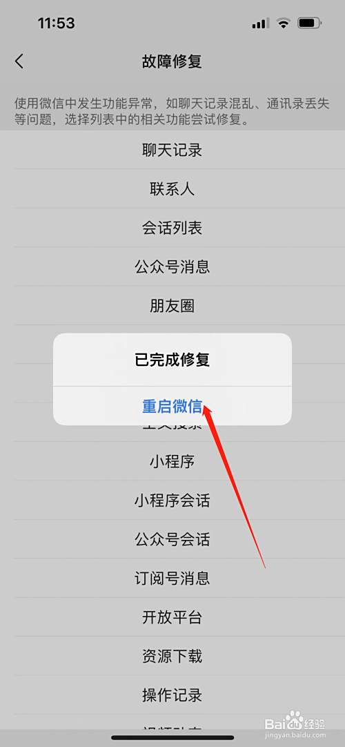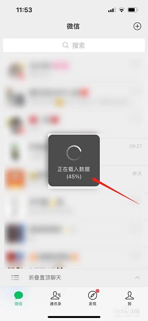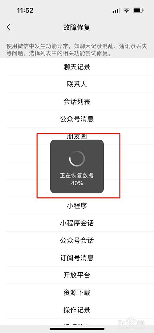 重启进入微信后,就会看到提示框正在恢复聊天数据,等待恢复至100%就可以查看自己已删除的聊天记录是否已恢复(删除太久的聊天记录可能会无法恢复)。