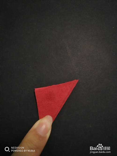 第六步,翻转到背面,把三角形部分往下折,最后在下面外翻折出一个小三角形。