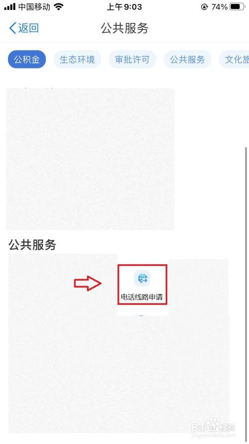 3.最后,选择公共服务中的“电话线路申请”选项即可。