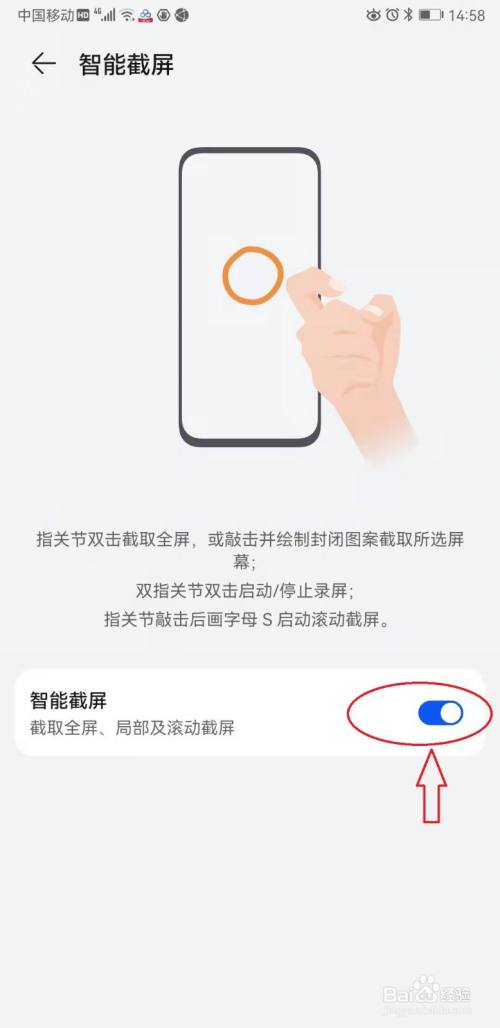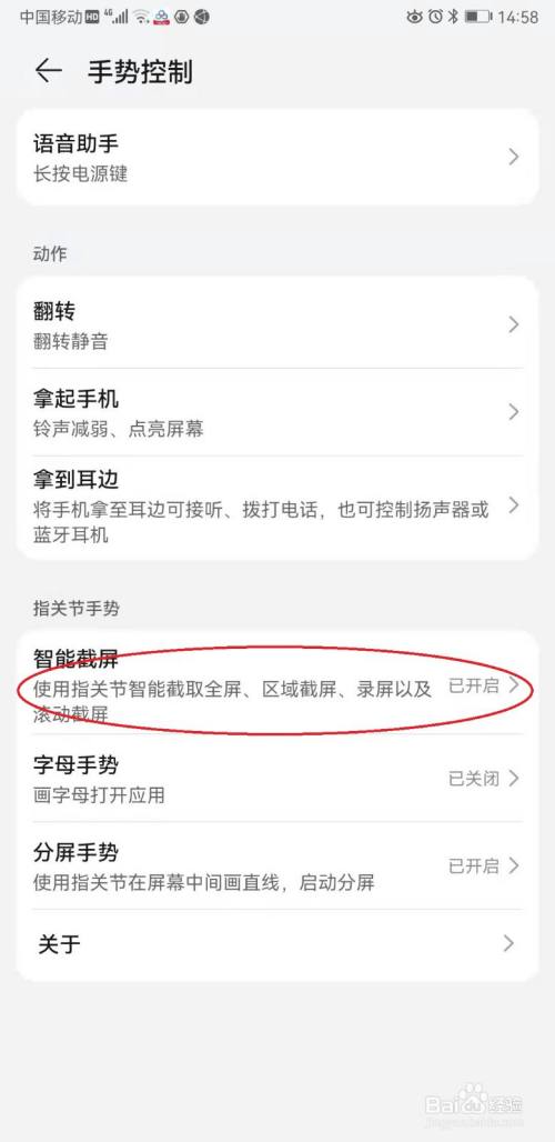 打开“智能截屏”开关