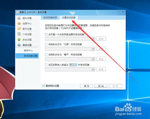 打开自动自动回复设置,我们就会看到有一个是设置自动回复的。