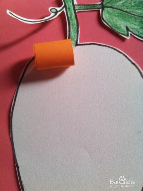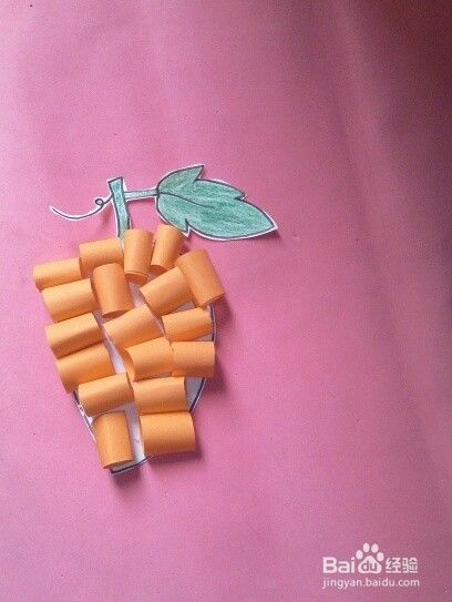 在贴在刚剪下的葡萄的白色上面,小编用的条形纸是橙色的,大家可以用自己喜欢的颜色当葡萄