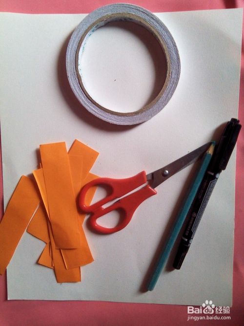勾线笔、双面胶、剪刀、一张白纸、和一些条形纸