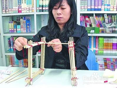 首先我们需要把一次性的筷子按四边形搭起来,然后捆绑好,大约三层就可以了,这样一个基架就出来了。