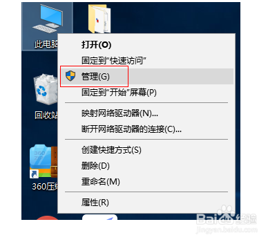 在Win10系统桌面上,鼠标右键此电脑选择管理进入。