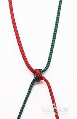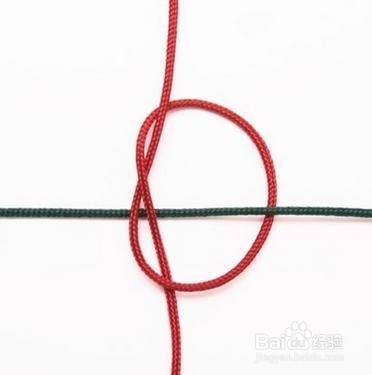 同时用绿绳在红绳打结的反方向打一个圈,注意要压住红绳的位置,绿绳在下面红绳在上面,绿绳在上的话红绳就在下面。