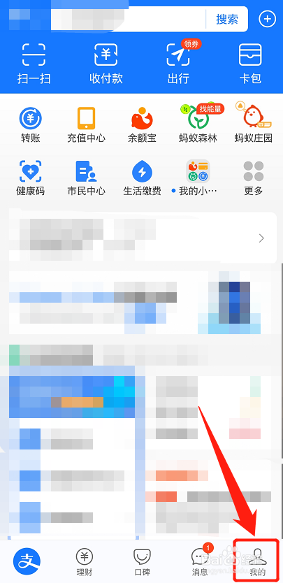 首先打开支付宝,进入首页后,点击右下角我的。