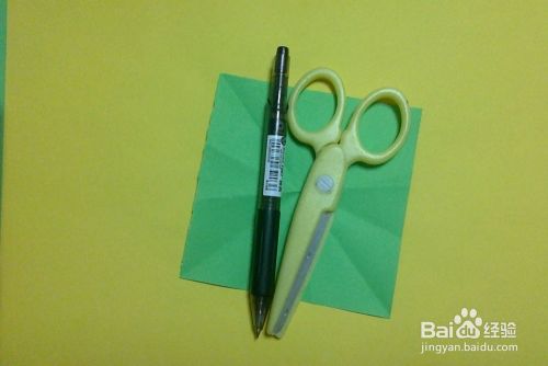 将正方形纸对边折整齐,找出中间点备用。