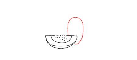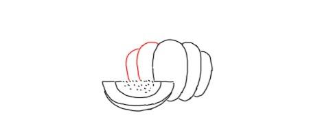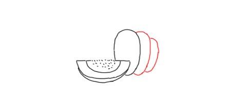 先来画一个切开的南瓜,勾画出南瓜下边果肉的轮廓及厚度线。