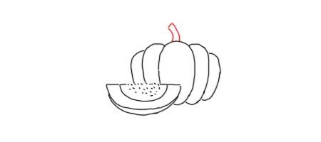 在左边也用同样的弧线勾画出两瓣南瓜瓣。