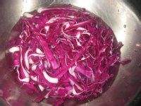 紫甘蓝洗净切成丝,同样泡一下冰水备用;
