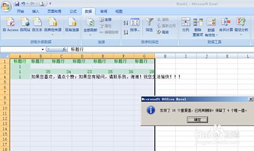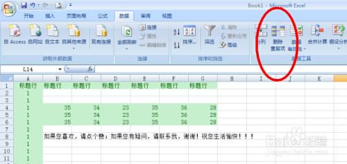 然后我们找到数据—删除重复值,这是在Office 2007中操作的;