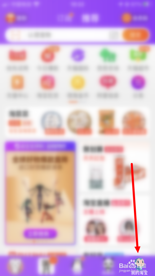 首先在手机上打开并登录手机淘宝,并在首页面点击【我的淘宝】。